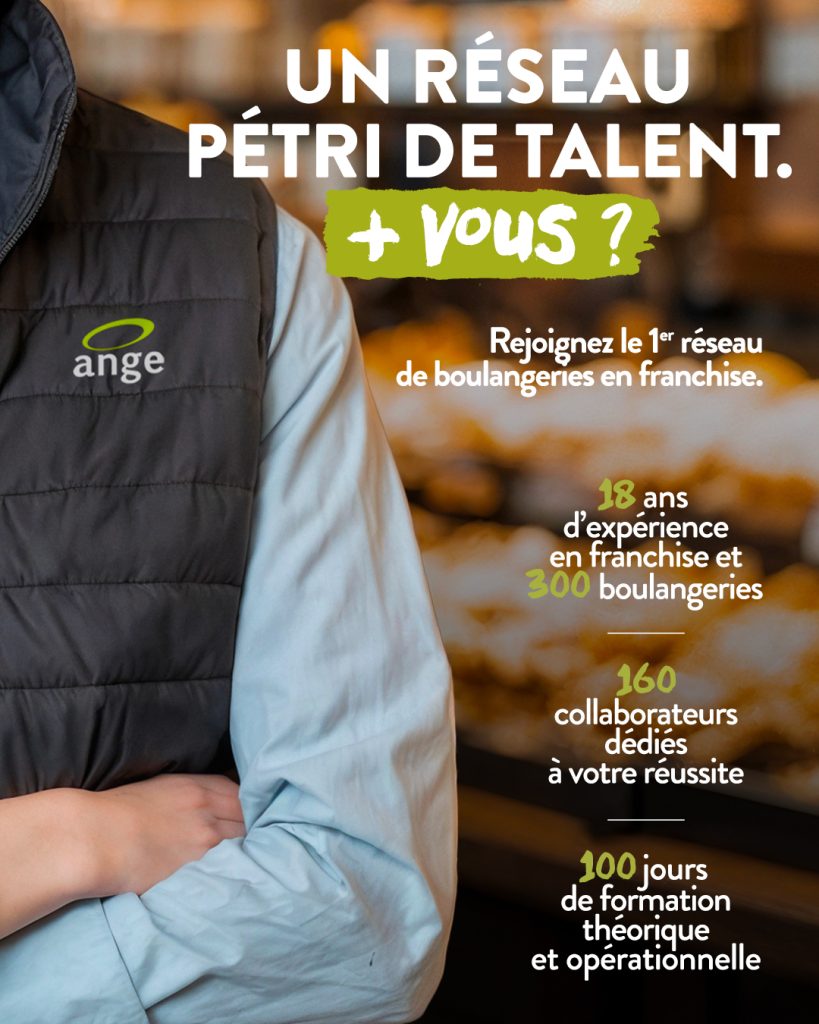 Avec 300 boulangeries, 18 ans d’expertise en franchise et un réseau de partenaires entrepreneurs en forte croissance, Ange s’impose aujourd’hui comme le premier réseau de boulangerie en franchise en France. A l’occasion du salon Franchise Expo Paris, nos équipes, accompagnées de franchisés, viennent à la rencontre des porteurs de projet pour présenter un modèle structuré, pensé pour accompagner durablement le développement d’entrepreneurs, notamment en multi-sites.